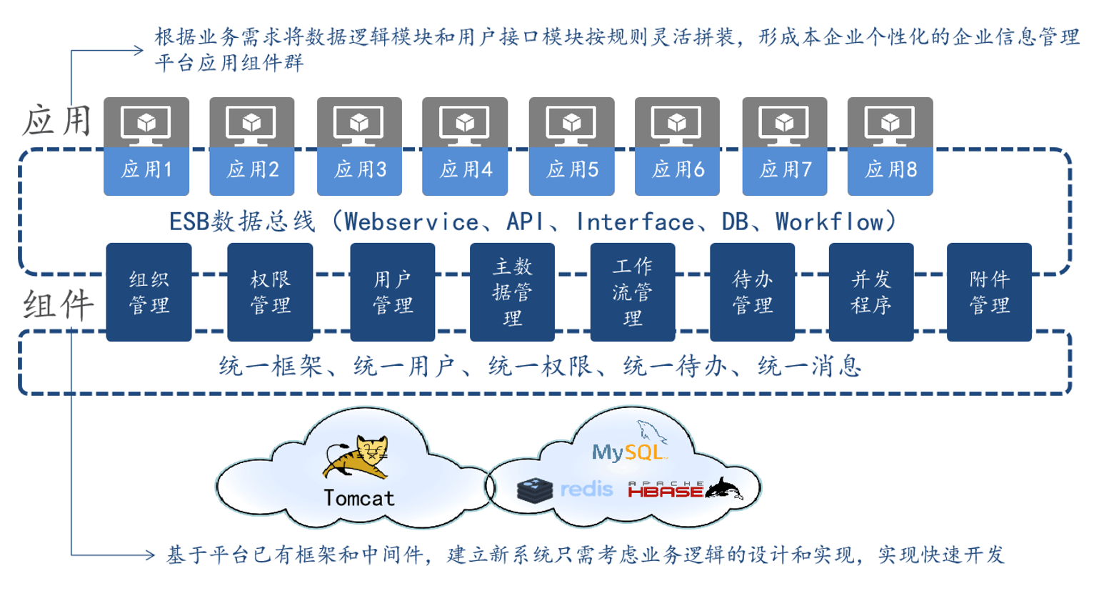 兴竹集成开发平台融合最新的平台管理理念,同时满足集团化多工程部署的集成特性与基础信息共享的管理需要。涵盖权限管理、工作流管理、系统运行监控、报表管理、附件管理、图表管理、自定义查询等业务范畴,兼顾平台与应用系统相互独立、互不影响的需求。界面友好,操作方便,同时深度分析挖掘数据关系提供辅助决策支持。